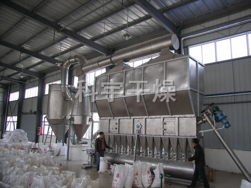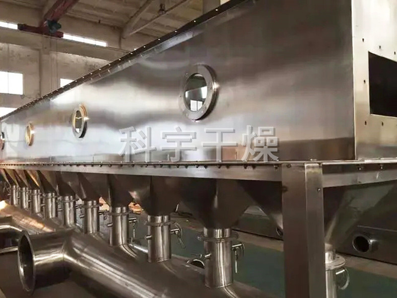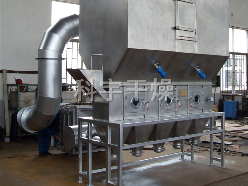 潔凈的熱風(fēng)經(jīng)閥板分配進(jìn)入床體內,從加料器進(jìn)入的濕物料被熱風(fēng)形成沸騰狀態(tài)。由于熱風(fēng)與物料廣泛接觸,增強了傳熱傳質(zhì)的過(guò)程,因此在較短時(shí)間內就可干燥。如用連續型,物料從床體的一頭進(jìn)入,經(jīng)過(guò)幾十秒至幾分鐘沸騰干燥,自動(dòng)從床體另一頭流出。本設備一般進(jìn)行負壓操作。