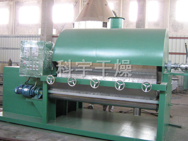 啟動(dòng)電機,主滾筒動(dòng)運轉平穩,溫度升高后加入物料后調整電機轉速及物料在滾筒上薄膜均勻程度來(lái)控制物料最終含水量。