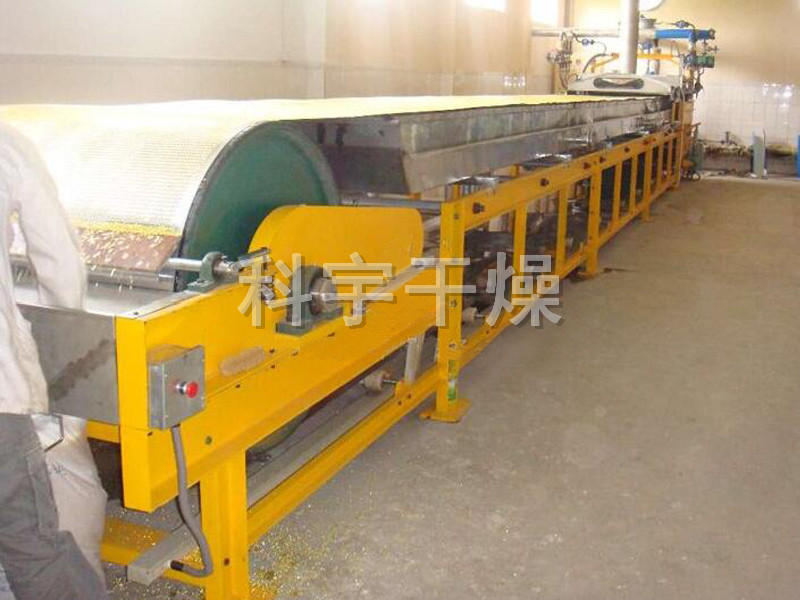 該機由液體變固體粒狀,主要是通過(guò)造粒模頭造粒,采用回轉式鋼帶連續進(jìn)行,通過(guò)噴淋水冷卻定型。