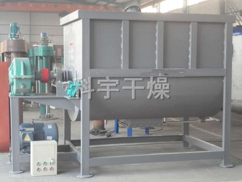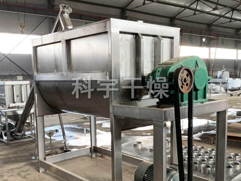 該機型由容器、螺旋攪拌葉片和傳動(dòng)部件組成:螺旋葉片一般做成雙層或三層,外層螺旋將物料從兩側向中央匯集,內層螺旋將物料從中央兩側輸送,形成對流混合。