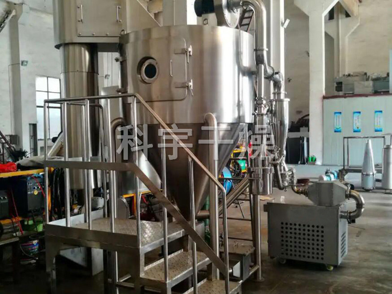 該機采用全封閉形式,所有部件均采用不銹鋼制造,配有三級凈化裝置,過(guò)濾后的空氣達十萬(wàn)級要求。筒體與頂部裝有冷壁裝置,使壁溫<80℃,干燥塔內裝有氣刷掃塔裝置。經(jīng)該機干燥后的中藥浸膏粉,不會(huì )出現焦化變質(zhì)現象,大大增加了收粉率(95%以上),而且不會(huì )產(chǎn)生混藥現象和粘壁現象。