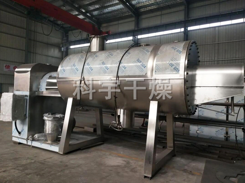 本機是一種新穎臥式間歇式真空干燥設備,濕物料經(jīng)傳導蒸發(fā),帶有刮板攪拌器不斷清除熱面上的物料,并在容器內推移形成循環(huán)流,水份蒸發(fā)后由真空泵抽出。